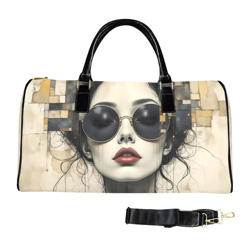 - Crossbody saddle bag featuring a bold original image of a woman in a fiery red leather jacket, dramatic red splashes, and an edgy skull motif. Pure punk attitude meets wearable art—because sometimes your accessories should have as much personality as you do.